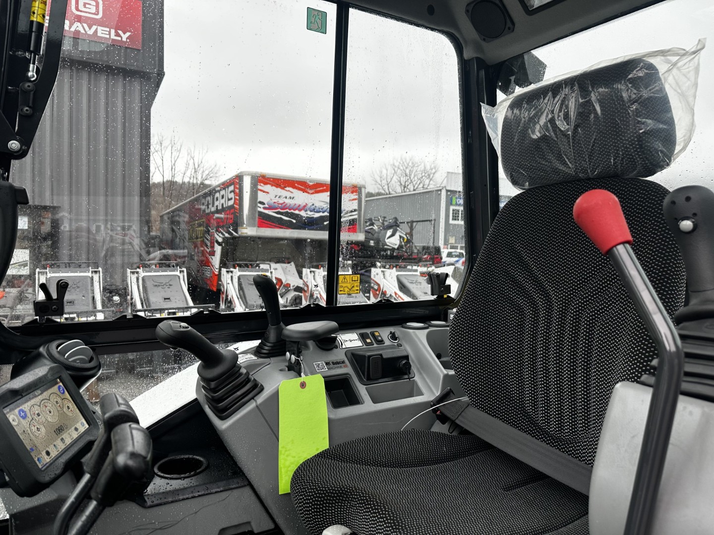 Cab Deluxe Package: Enclosed Cab with Auto HVAC, Telematics with 3-year Machine IQ Health & Security Subscription, Keyless Start, Bobcat 7" Touch Display with Radio and Bluetooth, Heated High Back Cloth Suspension Seat, Travel Motion Alarm